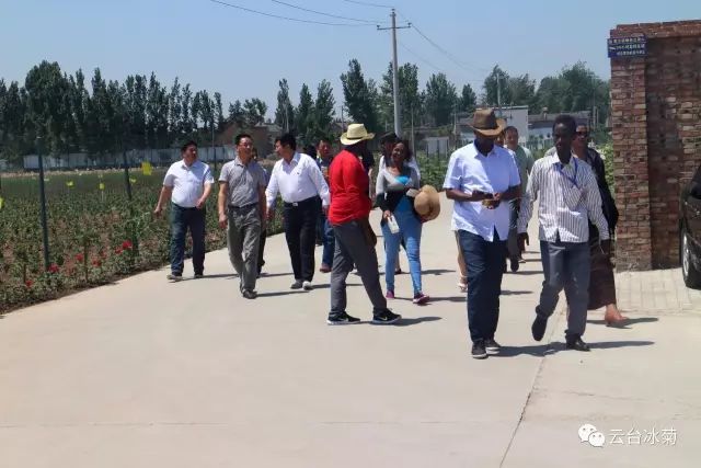 2017年5月16日,風和日麗,青云流蘇,來自吉布提的考察團一行來到【云臺冰菊】基地進行參觀、交流,本公司董事長宋曉龍熱情接待了來訪考察團,親自帶領國外友人參觀云臺冰菊基地,并就云臺冰菊的歷史淵源、發(fā)展歷程、種植過程及特色亮點作了生動而詳細的介紹。