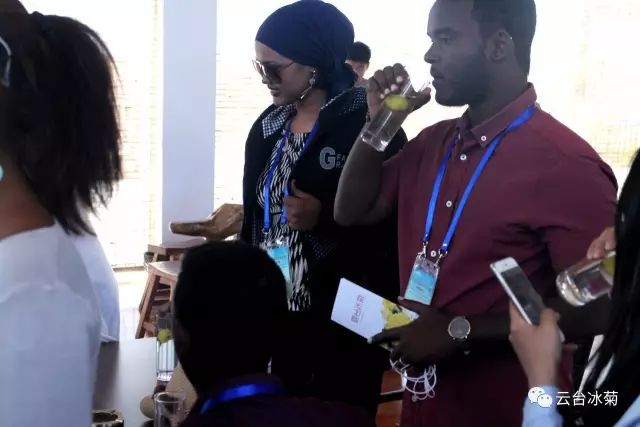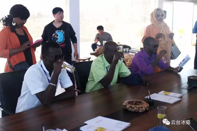 參觀結(jié)束后,冰菊人帶領考察團一行來品味這“泡”出來的健康,考察團對冰菊的形美、味香做出了高度的肯定和贊揚!